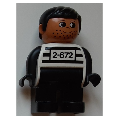 Duplo Figure, Early, with Short Parted Hair Black, Black Legs, Black Arms, Black Stripes and '2-672' Print (Criminal) |