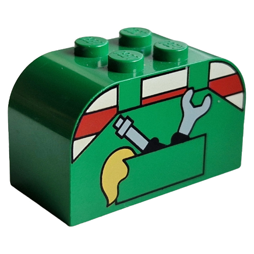 Brick Curved 2 x 4 x 2 Double with 3 Yellow Buttons, Green Collar Print |