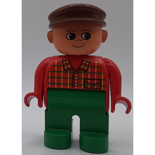 Duplo Figure, Early, with Flat Cap Brown, Green Legs, Plaid Shirt Print (Farmer) |