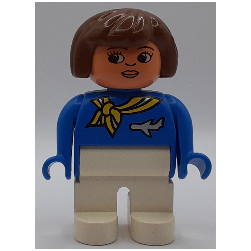 Duplo Figure, Early, Hair Bob Brown, White Legs, Yellow Scarf and Airplane, Turned Down Nose Print |