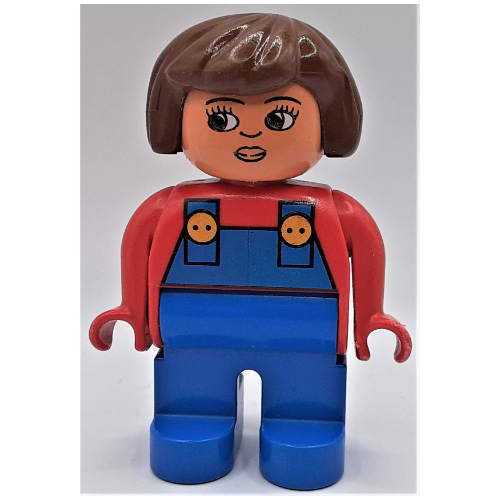 Duplo Figure, Early, Hair Bob Brown, Blue Legs, Blue Overalls, Turned Down Nose Print |